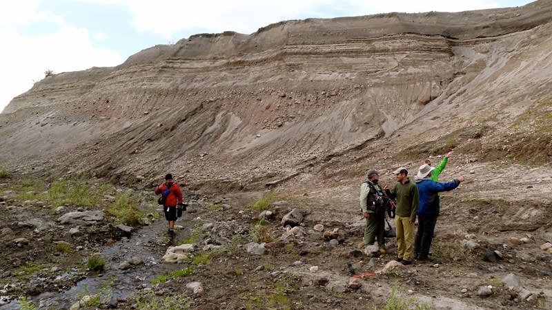 This is a picture from inside “Little Grand Canyon” at the base of Mt. St. Helens. The obvious is the film crew, Tom, Michael, Thomas, and Ian. Dr. Steven Austin, an incredibly smart geologist, is there as well (in blue).